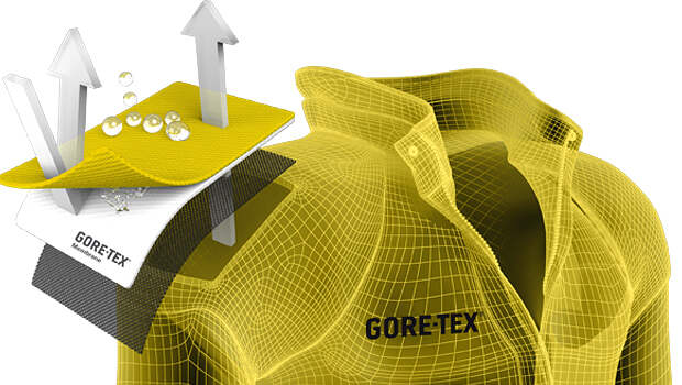 Мембранная ткань состоит из двух и более слоев. Материалы мистера Гора состоят из верхнего прочного износостойкого материала, защитных слоев, мембраны посередине и мягкого внутреннего слоя. Сама же мембрана представляет из себя очень тонкую фторопластовую пленку с огромным количеством отверстий-пор, число которых на 1 см2 составляет около 1,4 млн. При этом размер этих микроотверстий в 20 000 раз меньше капли воды.